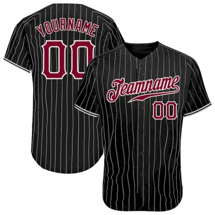 Custom Black White Pinstripe Maroon-White Authentic Baseball Jersey