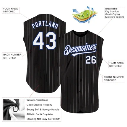 Custom Black White Pinstripe Royal Authentic Sleeveless Baseball Jersey
