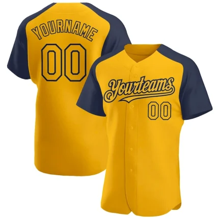 Custom Gold Navy Authentic Raglan Sleeves Baseball Jersey