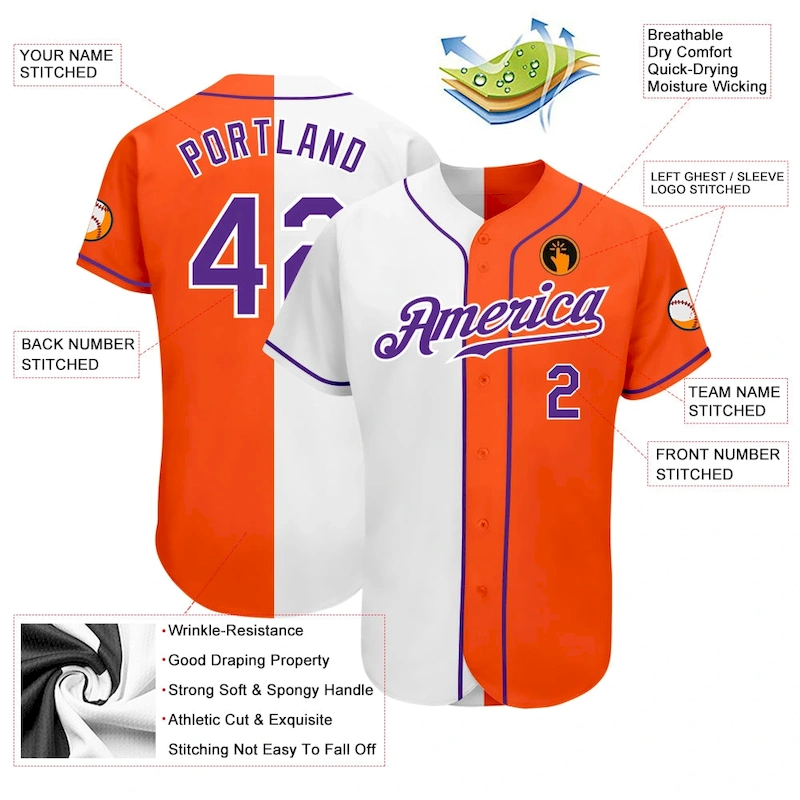 Custom Orange Purple-White Authentic Split Fashion Baseball Jersey