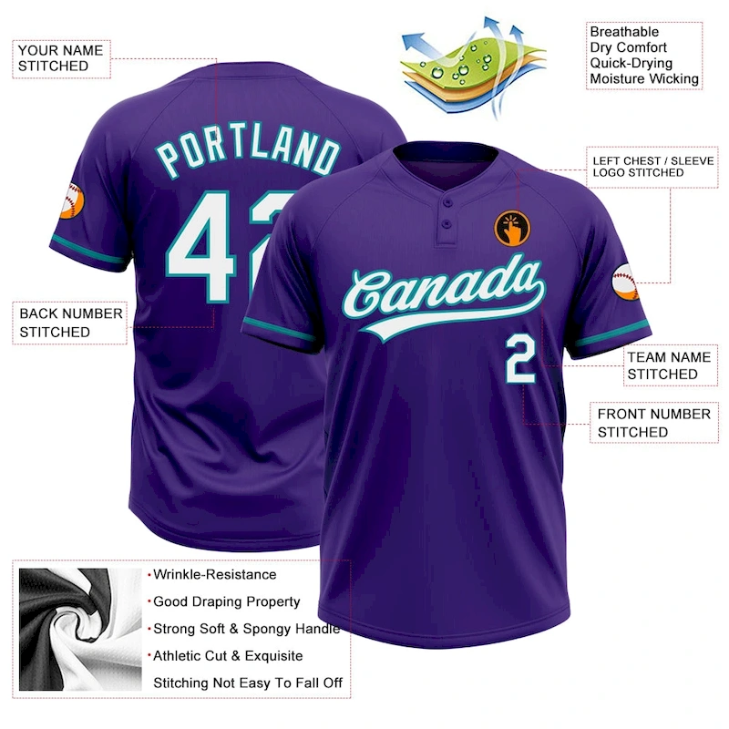 SKU: Custom-Purple-WhiteTeal-TwoButton-Unisex-Softball-Jersey Categories: , Tags: ,