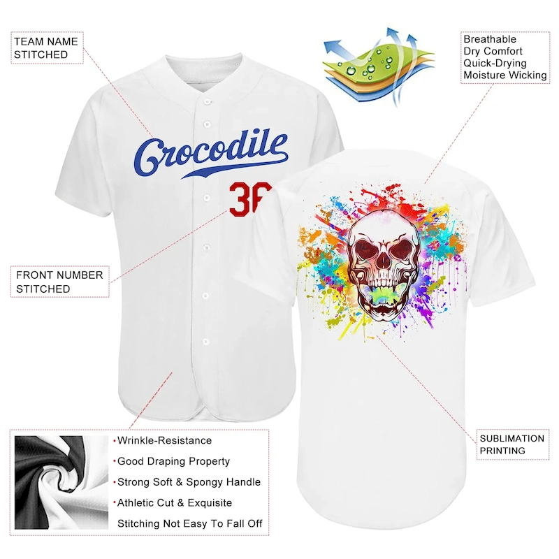 Custom White Royal-Red Authentic Skull Fashion Baseball Jersey