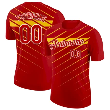 Custom Yellow Red-White 3D Pattern Design Abstract Brush Stroke Performance Polo Shirt